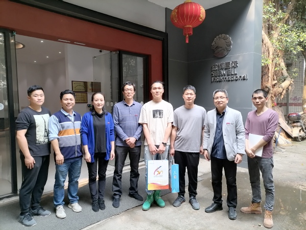 近日, 8x8x 党委书记肖东、院长郑鑫一行来到威狮国际艺术发展集团有限公司,走访公司副总经理、2005届陈剑兵和公司设计总监、2006届郭献文两位优秀校友。