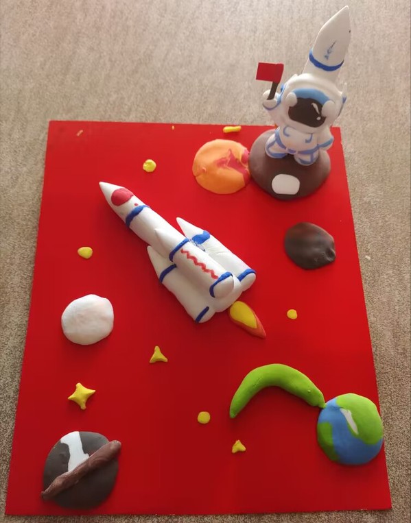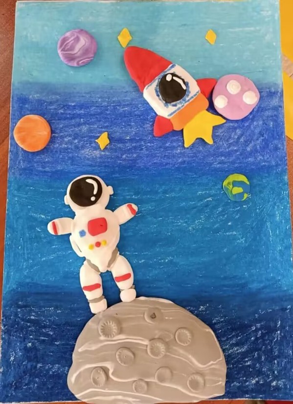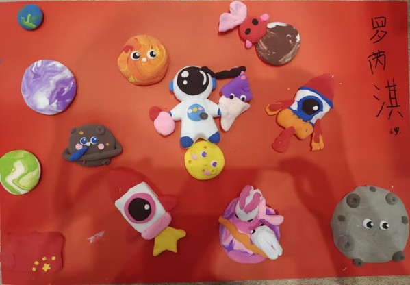 在志愿者的引导下,小朋友们对航天创作主题展开奇思妙想的构思,通过黏土、剪纸、绘画等多样的方式创作,展现小朋友们心中的航天世界,为孩子们编织出一个五彩斑斓的航天梦。
