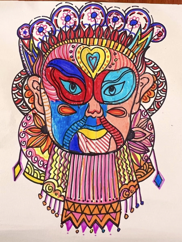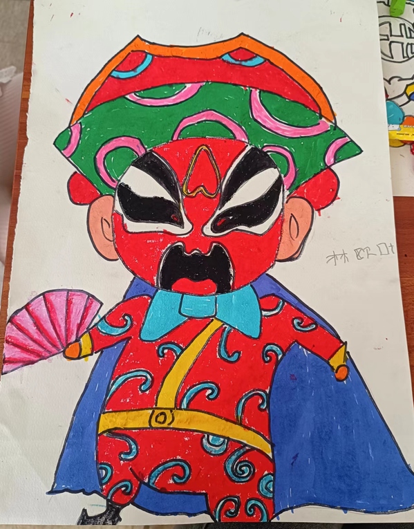 “蜀风流千古,雅韵传百年。”小朋友们通过彩绘和剪纸等方式将川剧脸谱艺术生动地描绘于纸上,不同的妆容服饰搭配和鲜艳的色彩碰撞,展现出小朋友们对脸谱的喜爱和独特见解,大家在学习创作中进一步感受了不同戏剧脸谱的魅力。