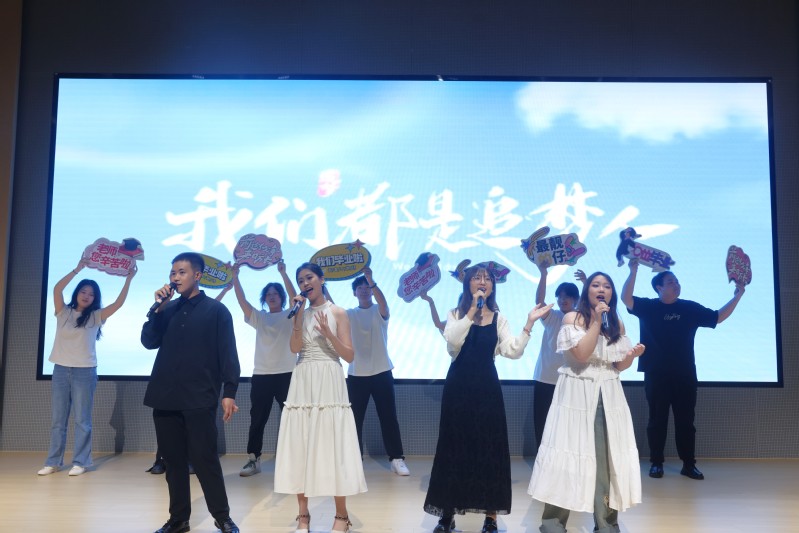 祝福仪式上,精彩的舞蹈串烧《舞彩缤纷》、小品《青春记忆》、歌曲《我们都是追梦人》等节目轮番上演,回顾了大家青葱的青春回忆,展现了美院学子们的才华和青春活力,表达了学院对毕业生们的深深祝福。