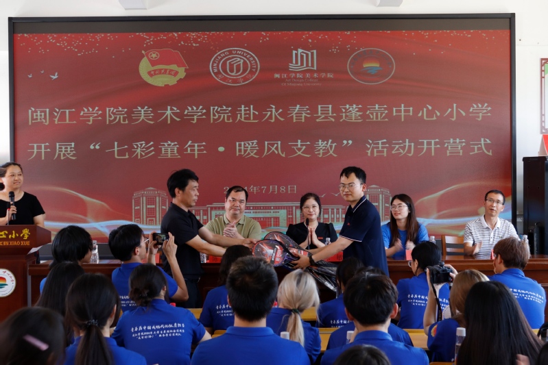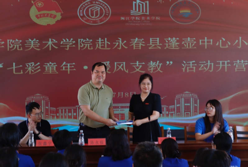 陈敏对蓬壶中心小学的领导、老师每年的精心安排和热情服务表示衷心的感谢。她指出,通过暖风支教活动,闽院学子走出大学校园,走进小学课堂,用实践生动演绎了大中小学教育一体化,这一支教活动赢得了小朋友们的喜爱与蓬壶父老乡亲的赞誉。她向队员们提出了三点希望,一是希望支教队员们勤思善学,认真备课,多向蓬壶中心小学的老师们学习,向队友学习,脚踏实地用知识和爱心给小朋友带去欢乐与知识;二是希望支教队员培养团队合作能力,发扬不怕吃苦不怕累的精神,激发自己的敢劲和干劲,努力用自己的智慧和汗水收获丰硕成果;三是希望支教队员们在支教过程中注意安全,遵守纪律,配合学校和指导老师,照顾好自己和上课的小朋友们。