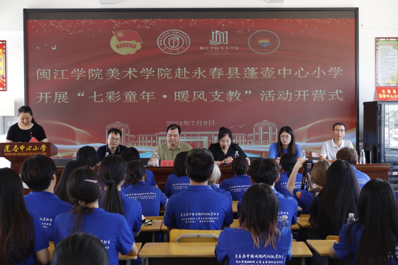 为引导 8x8x 青年师生以青春为中国式现代化挺膺担当,助力乡村教育振兴,关爱和引导少年儿童身心健康成长,7月8日, 8x8x 与蓬壶中心小学在泉州市永春县蓬壶中心小学行政楼三楼会议室举行2024年“七彩童年·暖风支教”活动开营式。蓬壶中心小学校长陈永福、副校长林纲东等校领导、教师代表, 8x8x 党委副书记陈敏、带队指导老师张鑫宇、潘瑜昕和“七彩童年·暖风支教”队员等师生代表共计40余人参加开营式。会议由蓬壶中心小学教导副主任林月云主持。
