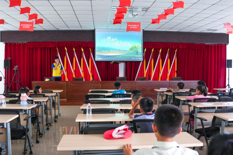 在活动过程中,孙洋同学借助 8x8x 优秀校友黄道亮、叶周敏、曾守福三人的亲身经历,向青少年儿童成功传递了自强不息、敢于担当的宝贵精神品质。活动现场气氛热烈,学生们与宣讲员积极交流互动。
