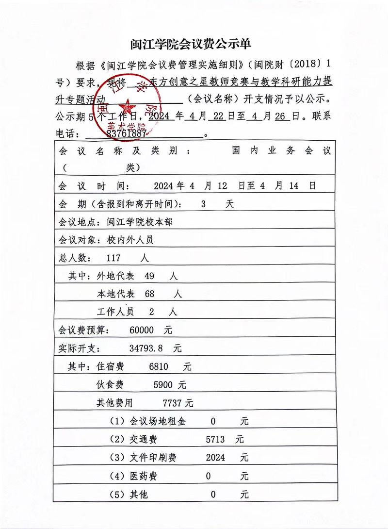 东方创意之星教师竞赛与教学科研能力提升专题活动会议费公示