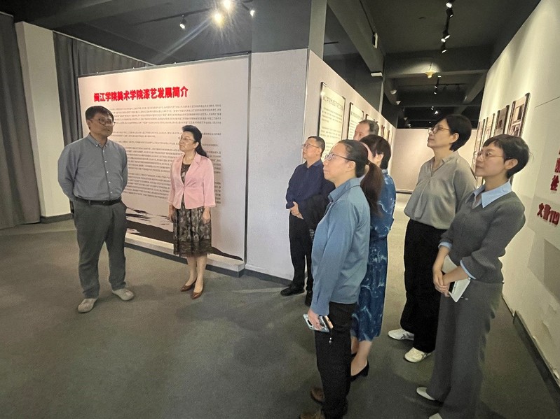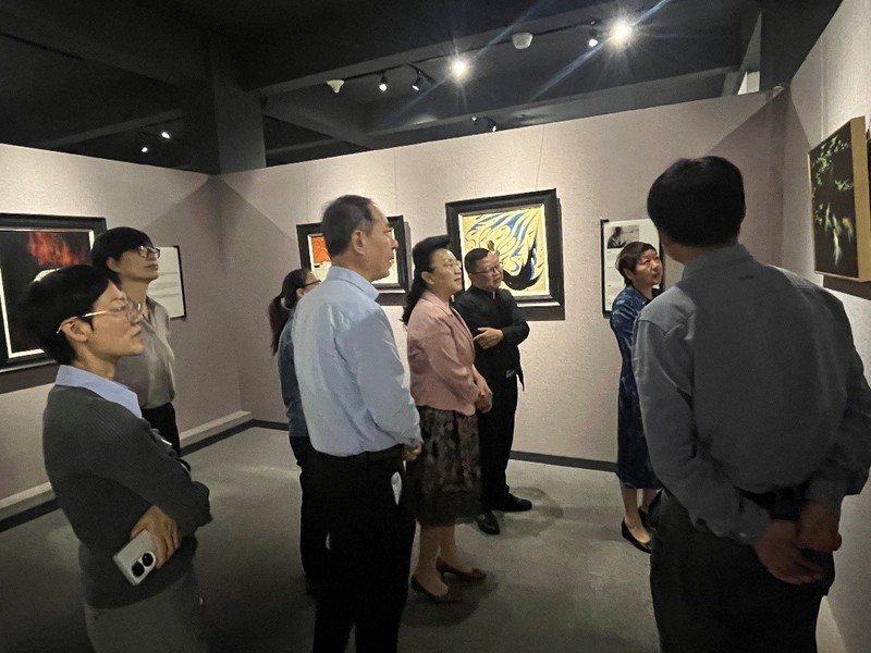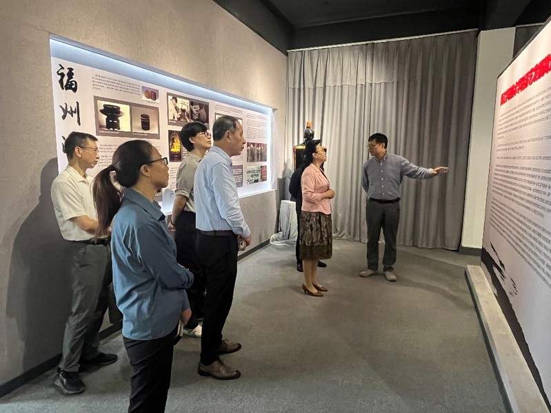 市政协一行参观了 8x8x 漆艺文化展厅,并围绕福州市漆艺之都建设、校地合作、美育体系等重点内容开展研讨。