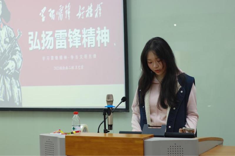 王艺霏同学讲述了雷锋精神对当代社会的重要意义。通过讲述雷锋生平经历,让同学们更加深入地了解雷锋精神,引导同学们成为红色精神的传承者。