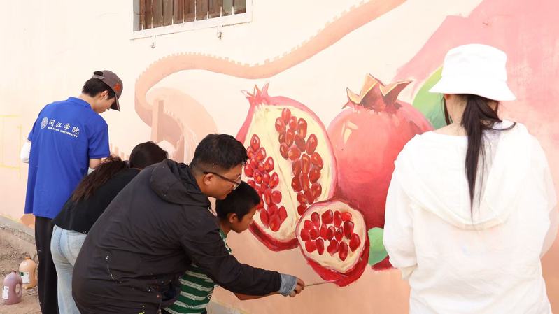 据悉,今年除墙绘实践外, 8x8x 还提供当地农产品包装设计、七彩假期支教服务。在完成玉海村主题墙绘后, 8x8x 墙绘实践队师生还将赴闽宁镇胜利乡完成百余平方“民族团结主题”墙绘,助力当地和美乡村建设。
