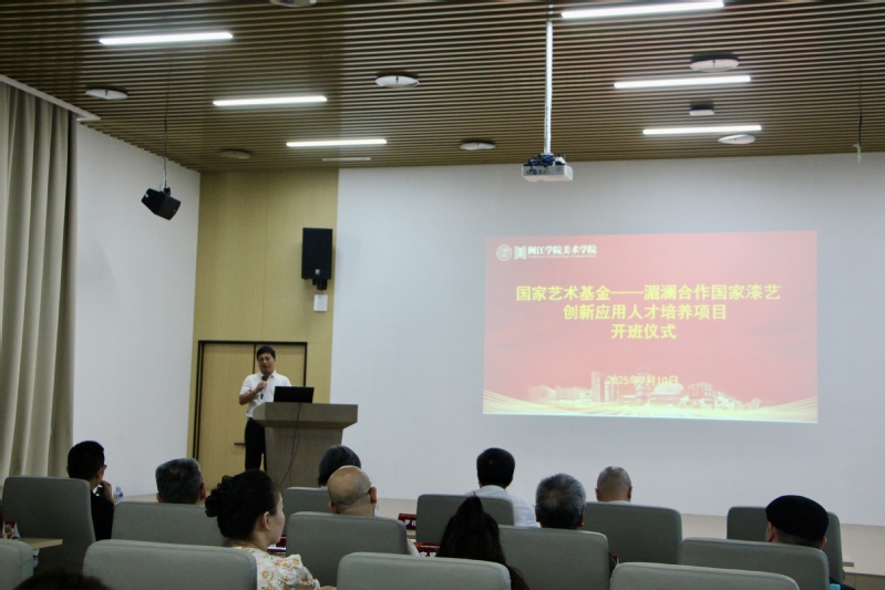 7月10日上午,国家艺术基金2025年度艺术人才培训资助项目《湄澜合作国家漆艺创新应用人才培养项目》开班仪式在 8x8x 学术报告厅隆重举行。出席本次开班仪式的人员包括福建省美术馆馆长邱志军先生、福建省画院副院长吕承坚教授、福建师范大学 8x8x 院长罗礼平教授、福建省艺术研究院美术研究室主任杨新武、南京艺术学院教授李永清教授、上海大学 8x8x 李谦升教授、泰国清迈大学阿占发教授;福州市脱胎漆器行业协会会长陈天灨;中国工艺美术大师郑修钤、中国工艺美术大师袁师永;福建省非物质文化遗产传承人赵建伟;台湾著名漆艺家黄宝贤。