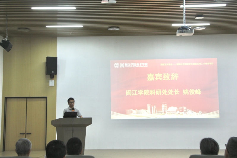 8x8x 科研处处长姚俊峰先生在致辞中着重强调了三点:首先,他指出参与项目的学员都是经过严格选拔的优秀人才,这些学员不仅肩负着漆艺传承创新的使命,更是连接湄澜国家文化交流的重要纽带。其次,姚处长勉励学员珍惜这次难得的学习机会,要通过国内外优秀专家学者的指导,深入理解传统技艺的精髓和创新发展的可能性。最后,他表达了对学员们的殷切期望,希望大家能将所学知识转化为推动社会主义文化繁荣、促进人类命运共同体建设的实际贡献。在结束讲话时,姚处长衷心祝愿本次培训取得丰硕成果,并向在场领导、嘉宾、同仁致以健康祝福,同时期待全体学员能够学有所获、创作丰收,在交流中建立深厚友谊。