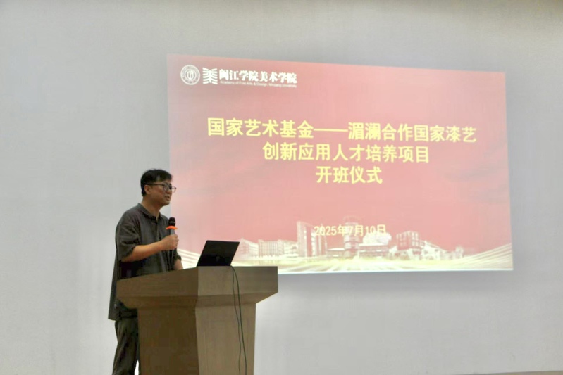 8x8x 金晖院长首先向来自全国各地的优秀学员表示热烈欢迎,并向国家艺术基金督导专家、授课导师以及出席嘉宾致以诚挚谢意。开班式上,他强调了本项目学员构成的多样性,既包括来自专业美术院校的教师,也涵盖了高职院校的教师代表。金晖院长指出,通过本项目培训,将有效推动湄澜合作国家漆艺工艺创新路径向各类型院校的传播,进而形成显著的辐射效应,这一特点使本项目具有特别重要的意义。