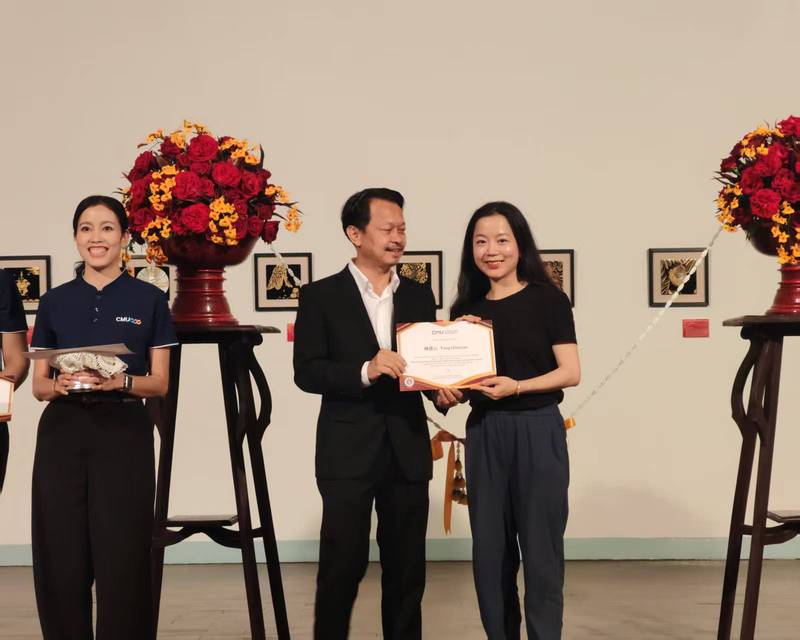7月15日下午,泰国清迈大学艺术中心内气氛热烈,国家艺术基金2025年度艺术人才培训资助项目《湄澜合作国家漆艺创新应用人才培养项目》项目汇报展在此隆重开幕。此次开幕式汇聚了众多艺术领域的专家与学者,包括泰国清迈大学 8x8x 院长Sukree教授、 8x8x 院长金晖教授、泰国清迈大学 8x8x Pitsamai教授和Phumrapee教授, 8x8x 教授罗芳林、陈宇,正高级工艺美术师吴欣,以及参加本次项目培训的30名学员。