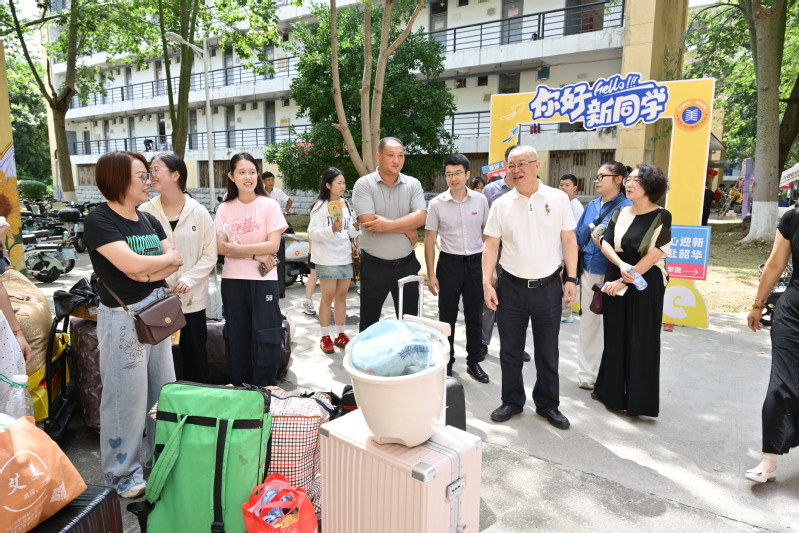 96日, 8x8x 迎来了2025级新同学。当天上午,校党委书记叶世满率学工部部长杨晓、副部长郑秋与 8x8x 党委书记张万辉、副书记陈敏、副院长郑志强一行深入行合社区五号楼,实地察看新生报到情况,并对 8x8x 高效有序的组织工作和师生志愿者展现出的良好精神风貌,向阳文化主题的专业特色布置和温暖的服务给予充分肯定。走访过程中,叶书记与新生及家长进行了亲切交流,并送上诚挚的欢迎与问候。