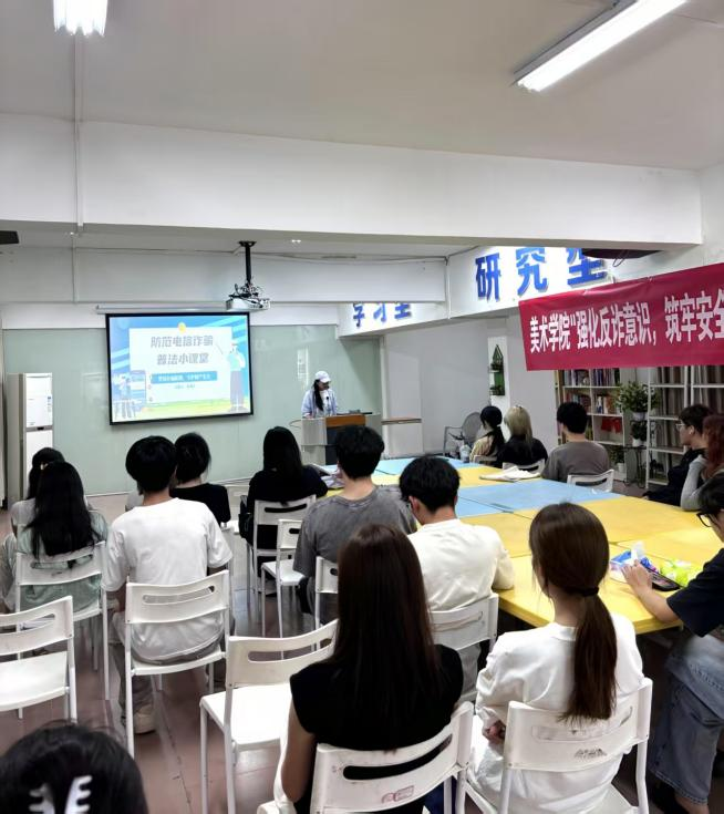 为深化“一站式”学生社区建设,增强学生反诈意识,10月16日,由共青团 8x8x 委员会主办,院学生服务中心、 8x8x 学生第二支部承办的“启智润心•道德讲堂”之“强化反诈意识,筑牢安全壁垒”主题宣讲活动在辅导员之家顺利举行。活动现场,各年级学生代表共计30余人满怀热忱地参与其中,认真聆听由2024级视觉传达设计2班陈诚谦和2024级环境设计2班金书亭两位同学带来的精彩宣讲。