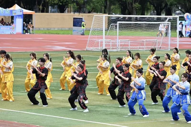 美院学子身着黑底红龙纹南拳劲装蓄势待发,千人健身操燃动全场、惊艳师生。南拳刚劲与太极圆融相得益彰,一招一式尽显国风底蕴,尽显少年意气与传统之美。