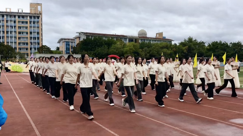教职工趣味运动会同样精彩纷呈,“动感颠球”“旱地龙舟”“插秧收割”等项目妙趣横生。同学们为老师高声呐喊、热情助威,赛道旁“加油”声不绝于耳。师生同心聚力、奋勇争先,终摘佳绩!